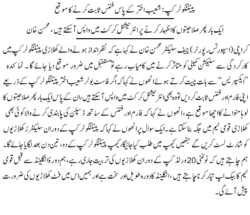 Shoaib Akhtar ke pas Fitness sabit krne ka moqa - urdu sports news