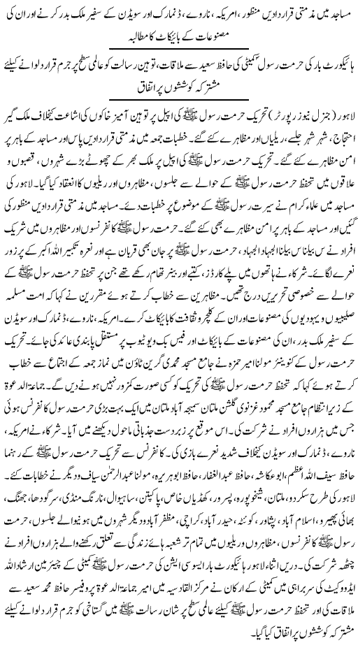 Mulak mai Hurmaat Rasool Saw ke bare Rallies - urdu national news