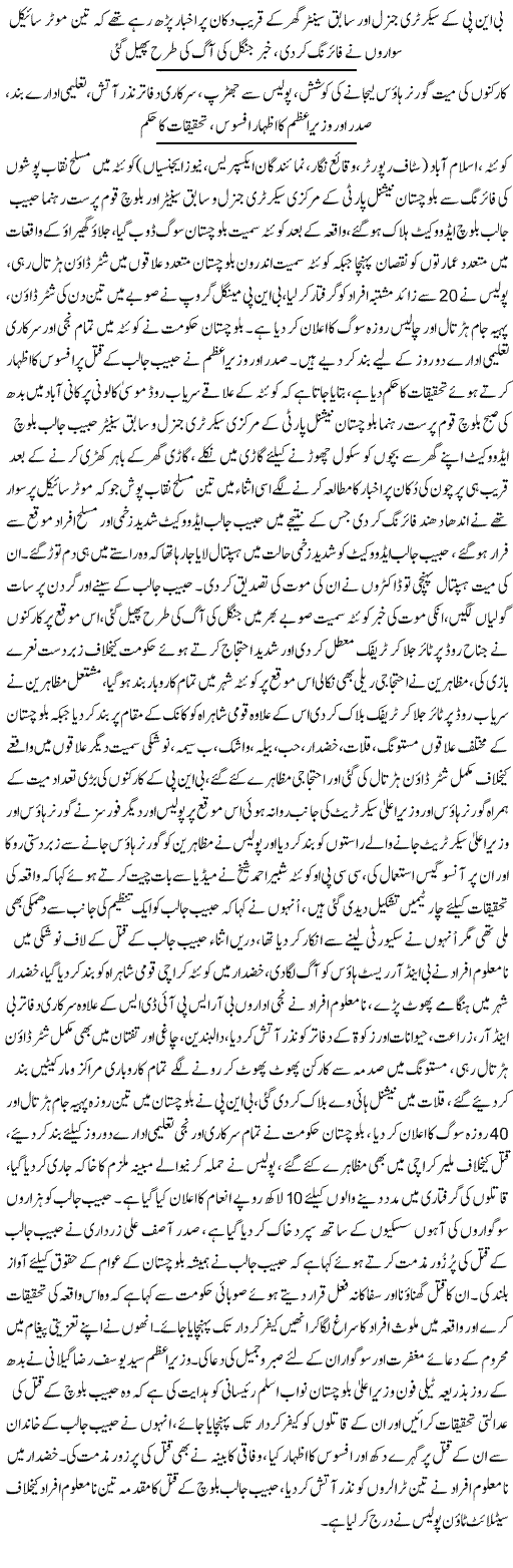 Baloch Leader Habib Jalib Qatal - urdu national news