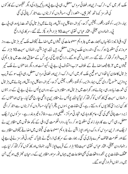 India Petrol Keemton mai azafe ke khilaf muzahre - urdu world news