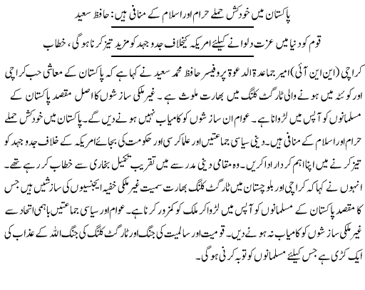 Khud Kush Hamle Haram Hain Hafiz Saeed - Urdu Islamic news
