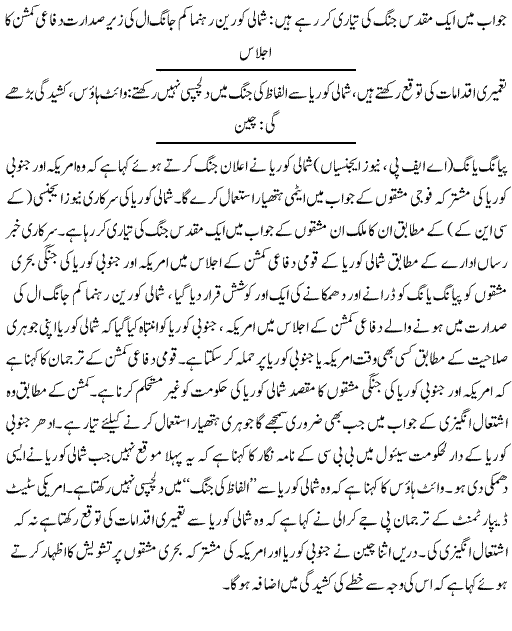 Shumali Korea ka Janobi Ke Khilaf Elaan Jang - urdu world news