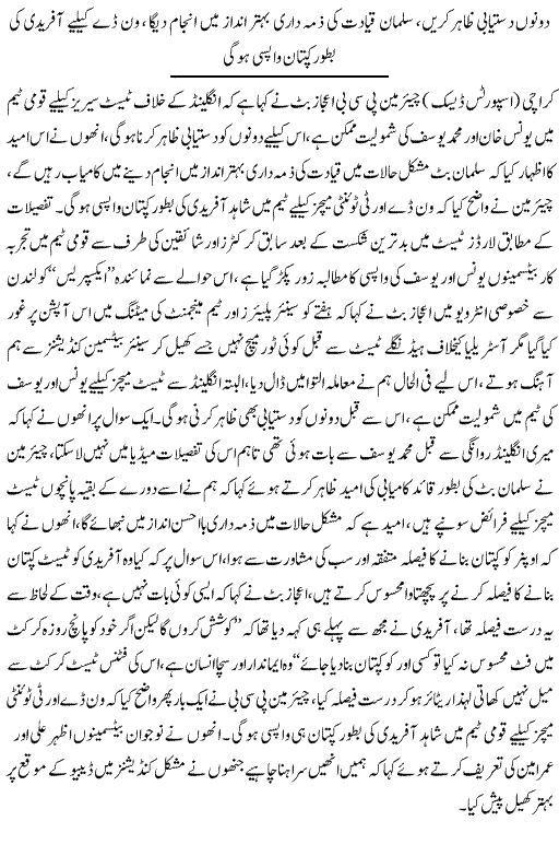 Yousaf aur Younis team mai aa skte han Ijaz Butt - urdu sports news