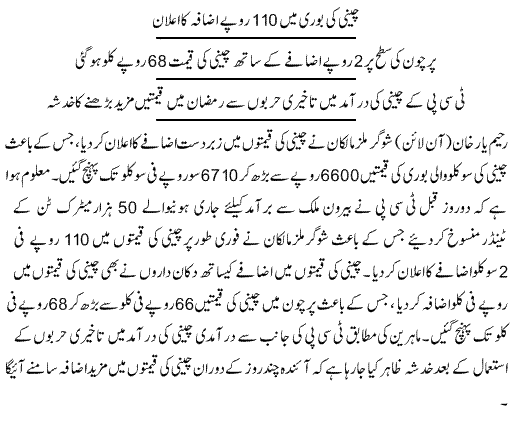 Cheeni ki Bori 110 Rs Mahngi - urdu business news