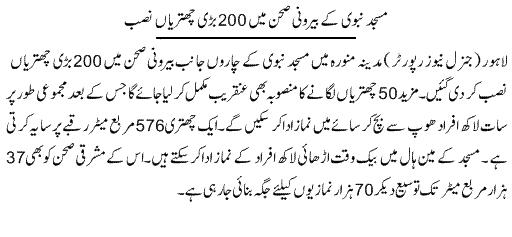 Masjid Nabwi ke Sehan Mai 200 Chatrian Nasab - Urdu Islamic News