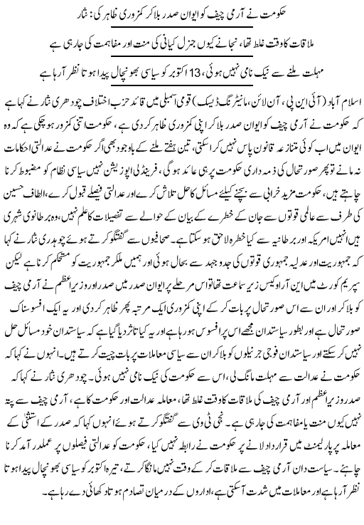 Army Chief Se is Waqt Mulkaat Galat Thi Nisar - Urdu Politics News
