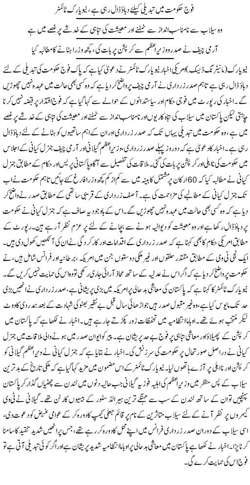 Foj Hakomat Mai Tabdeeli Chahti Hai Report - Urdu Politics News