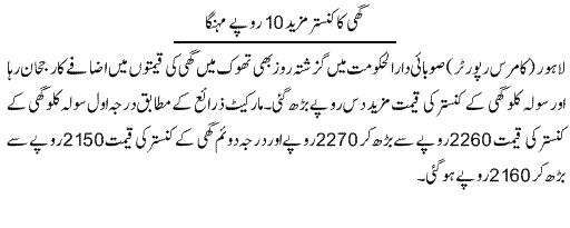 Ghi Aaj Phir 10 RS Mahnga - Urdu Business News