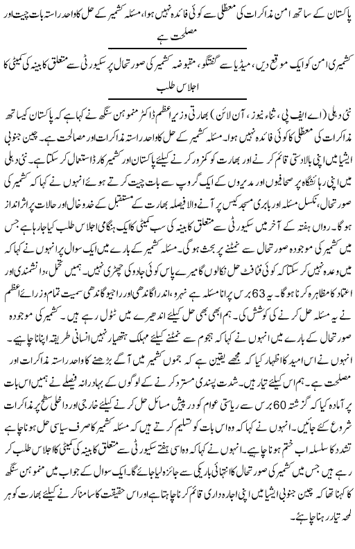 Kashmir Masla Haal Krne Ke Lie Koi Jado Nahi Manmohan - Urdu World News