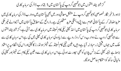 Abu Dhabi Group Ki Pakistan 2 Arab Dollar Ki Sarmaya Kari - Urdu Business News