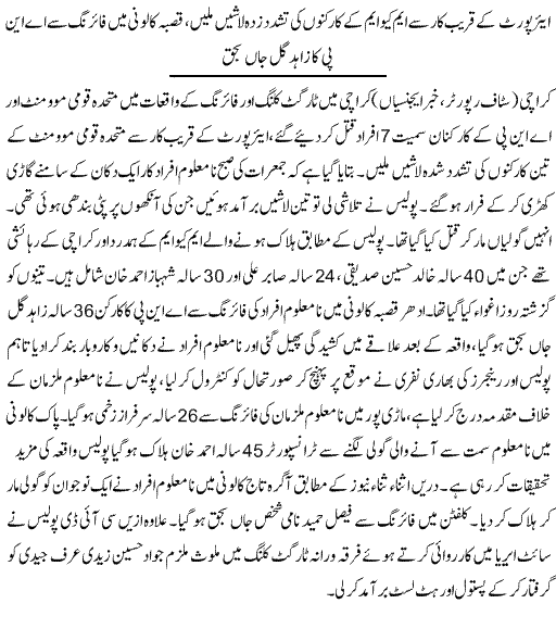 Karachi Target Killing Mai 7 Halak - Urdu National News