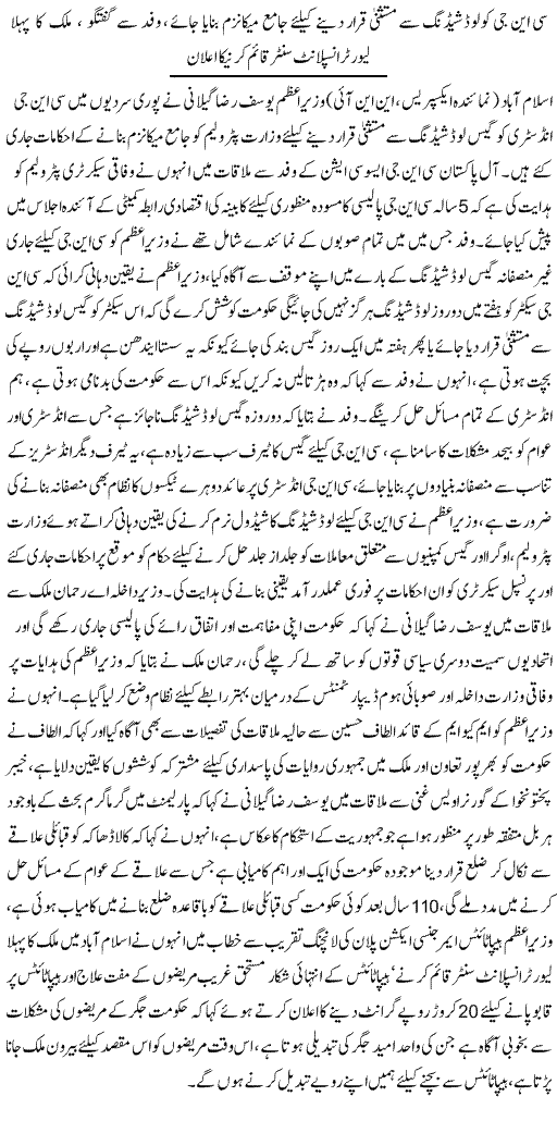 CNG Load Shading Khtam Kren Ge Gilani - Urdu National News