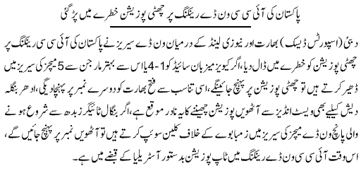 Pakistan Ki 6th ICC Ranking Bhi Khatre Mai - Urdu Sports News
