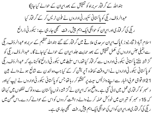 Jundullah Ka Leader Iran Ke Havale Kia Jae Ga - Urdu National News