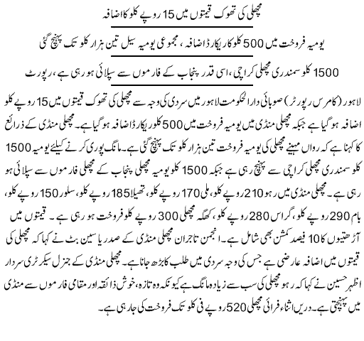 Machli Fish 15 RS KG Mahngi - Urdu Business News