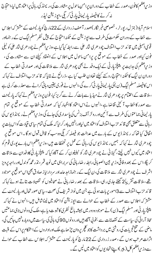 We Can Do Protest In President Address In Parliament Ch Nisar - Urdu Politics News