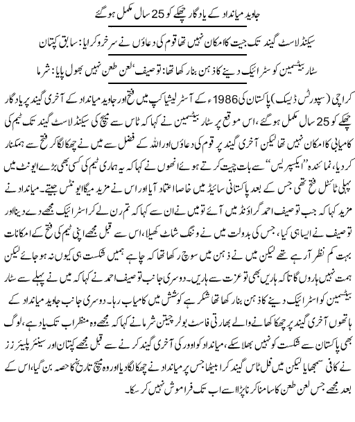 25 Years of Miandad's Historical Six Completed - Urdu Sports News
