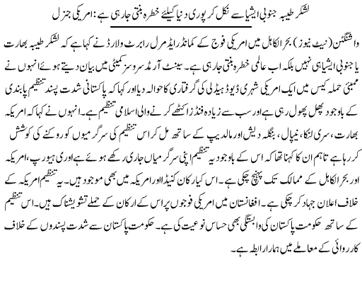 Lashkar Taiba Became Threat To Whole World American General - Urdu World News