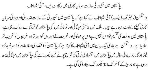 Security is Problem In Investment in Pakistan IMF - Urdu Business News