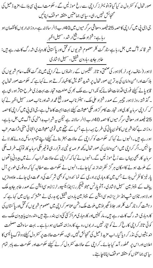 Karachi Situation Effecting Economy - Urdu Business News