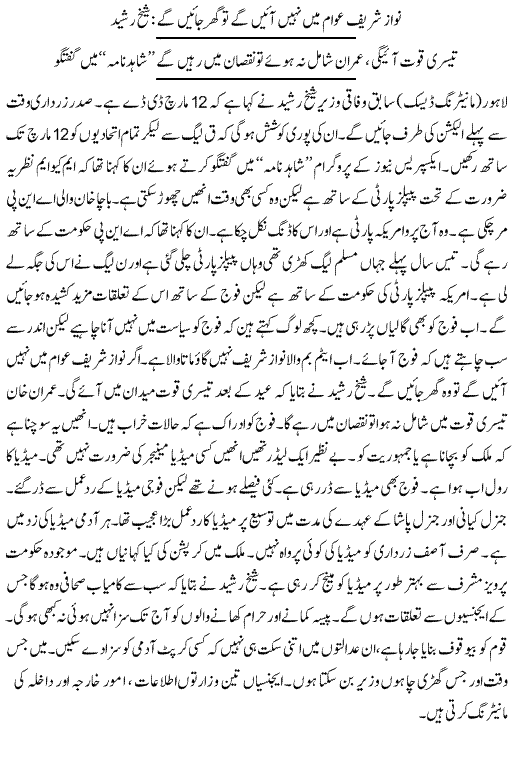 Nawaz Sharif Will Be Defeated If Not Came In Pubic Sheikh - Urdu Politics News