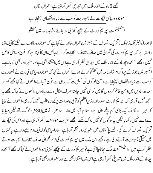 Seeing Change In Next 6 Months Imran Khan - Urdu Politics News