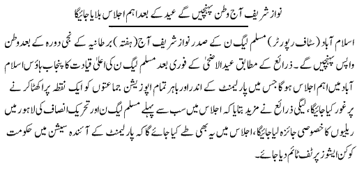 Nawaz Sharif Will Reach Pakistan Today for Eid.