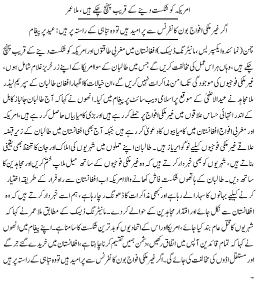 We Are Near To Defeat America: Mullah Omar Eid Message