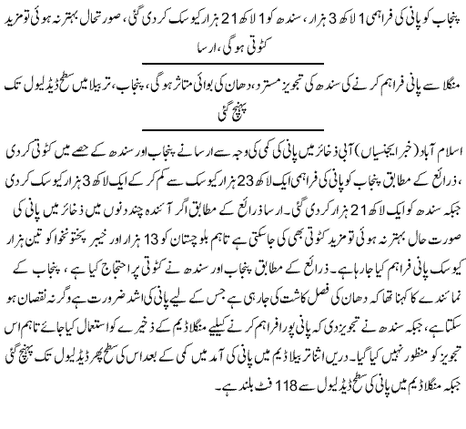Arsa se Punjab aur Sindh ka pani kum kr dia - urdu national news