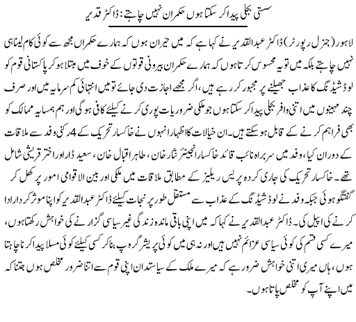 Sasti Bijli pada ho skti hai Hukmraan nahi chahte Dr Qadeer - urdu national news