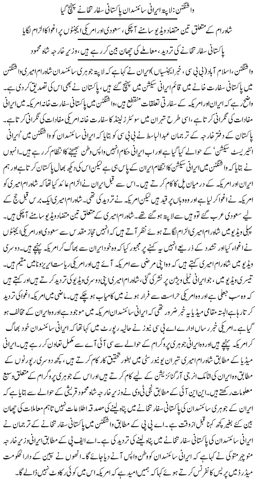 Washington Lapata Irani Science dan Pakistani Embassy mai - urdu world news