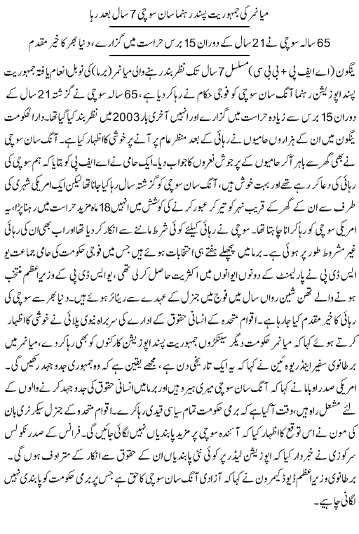 Myanmar Ki Jamhoriyat Pasand Leader Aung San Raha - Urdu World News