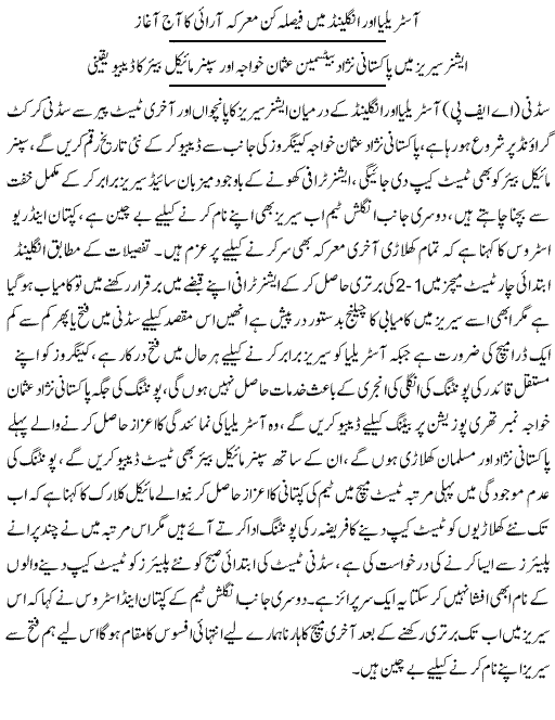 Australia England Ka Akhri Ashes Test Aaj - Urdu Sports News