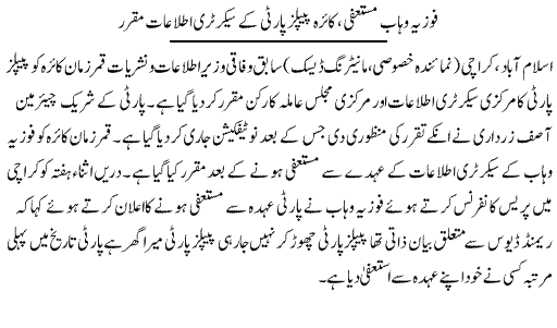 Fozia Wahab Resigns As Secretary Information - Urdu Politics News