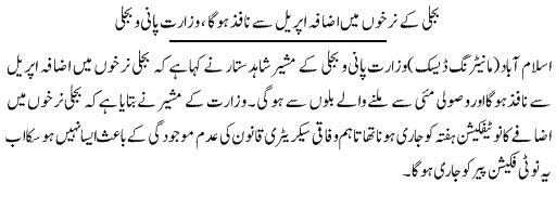 Electricity Prices To Increase From 1st April - Urdu Business News