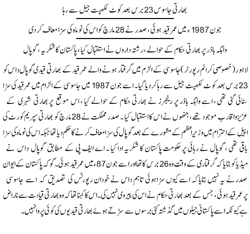 Indian Agent Freed After 23 Years From Lahore - Urdu National News