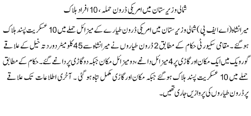 North Waziristan 10 Killed In Drone Attack - Urdu National News